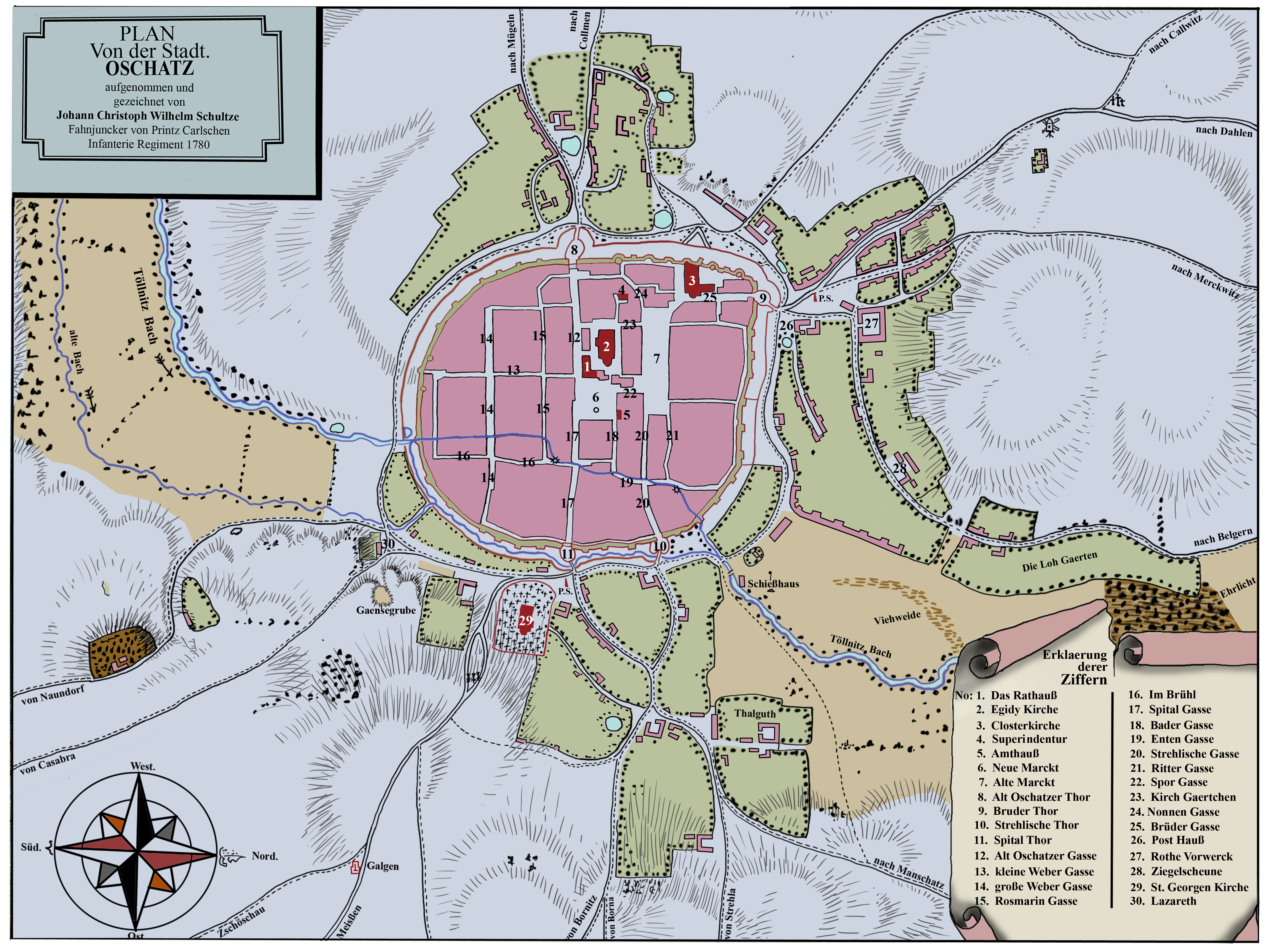Aufgenommen u. gezeichnet von Johann Christoph Wilhelm Schultze, Fahnenjunker des Prinz Carlschen Infanterie Regiments Oschatz.