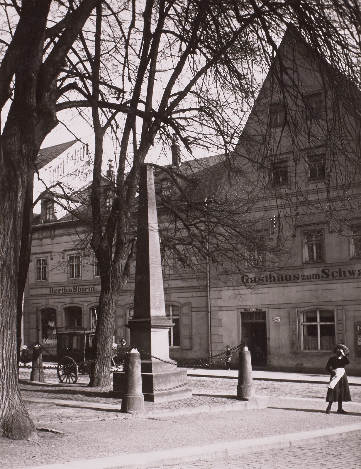 Das Denkmal im Vordergrund war trotz der Ähnlichkeit keine kursächsische Postdistanzsäule, sondern ein Kriegerdenkmal.