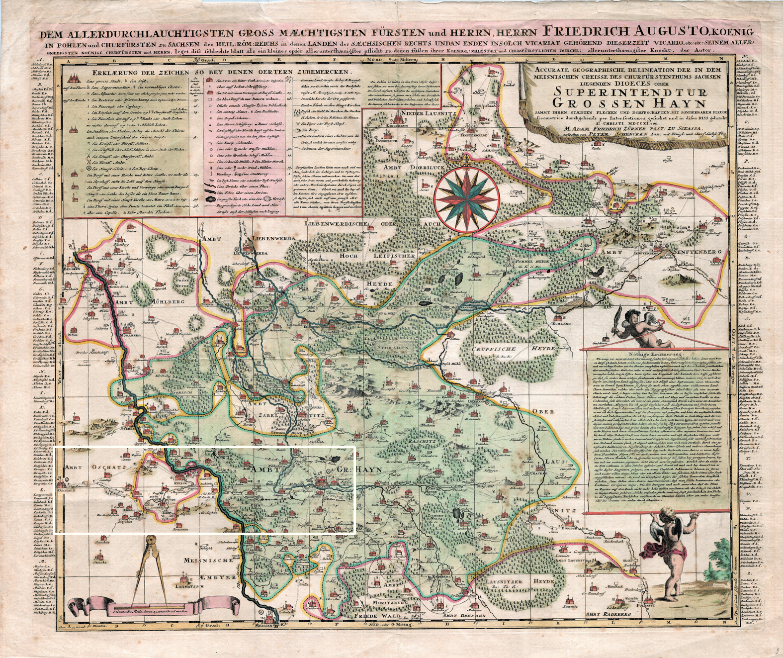 1711 Karte der SUPERINTENDENTUR GROSSEN HAYN Entwurf und Zeichnung - Adam Friedrich Zürner
