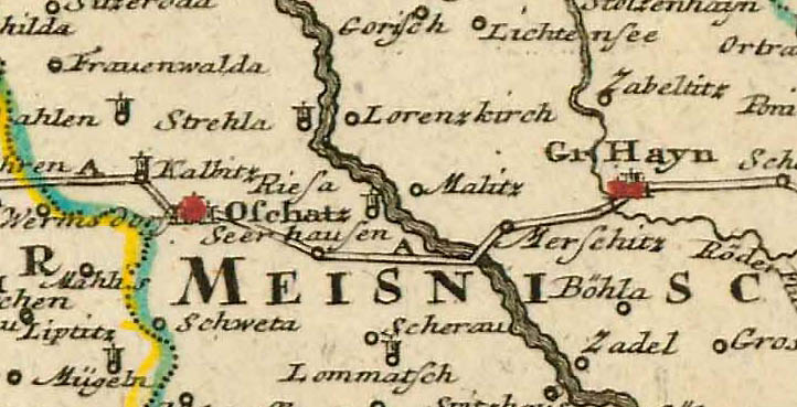1728 Karte der Kurfürstl. Sächs. Handelsstraßen Zeichner - J. C. K.