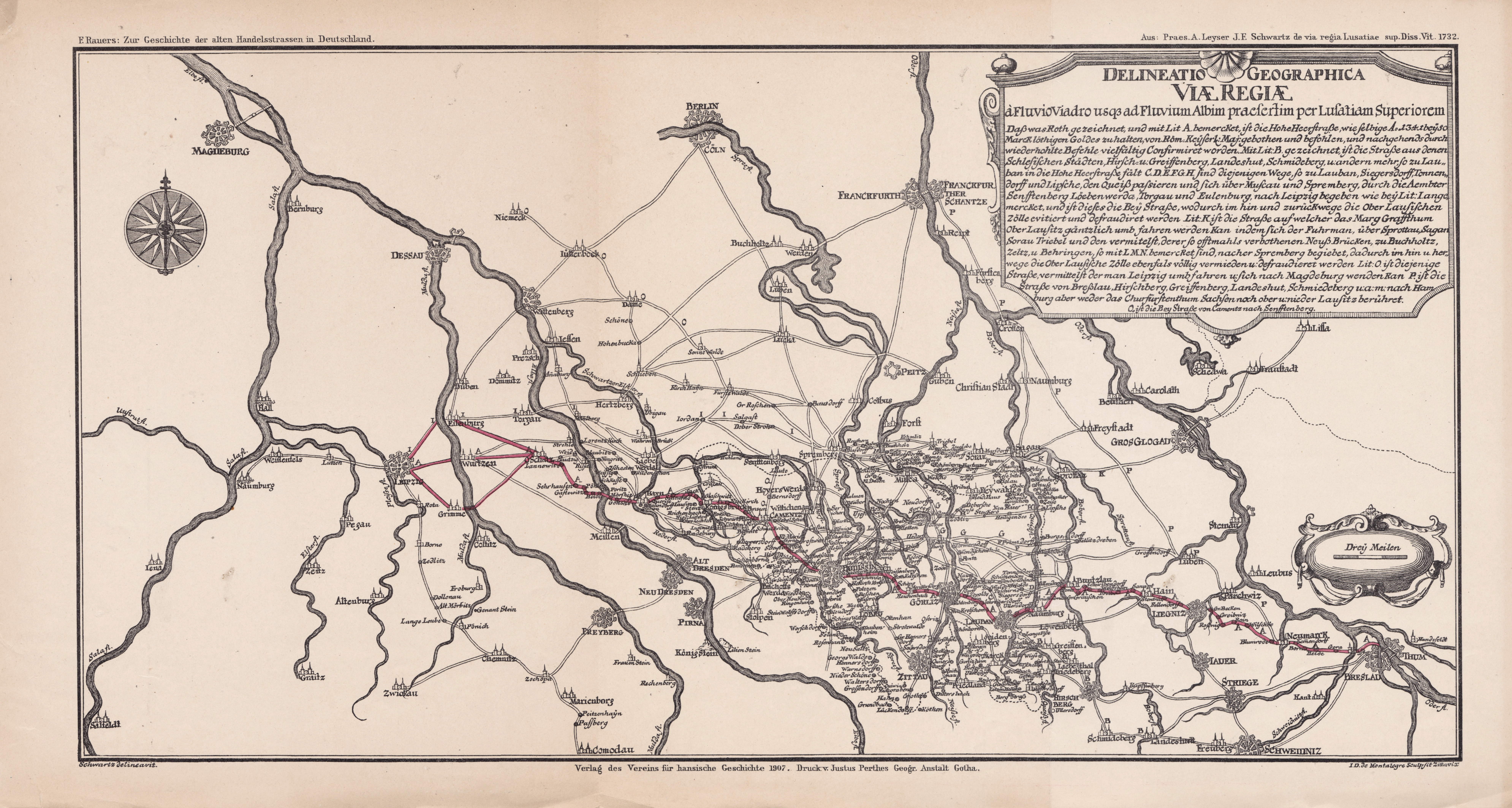 Kartenbeilage zu: "VIAM REGIAM LVSATIAE SVPERIORIS" Dissertation von Iohannes Fredericvs Schwartz,