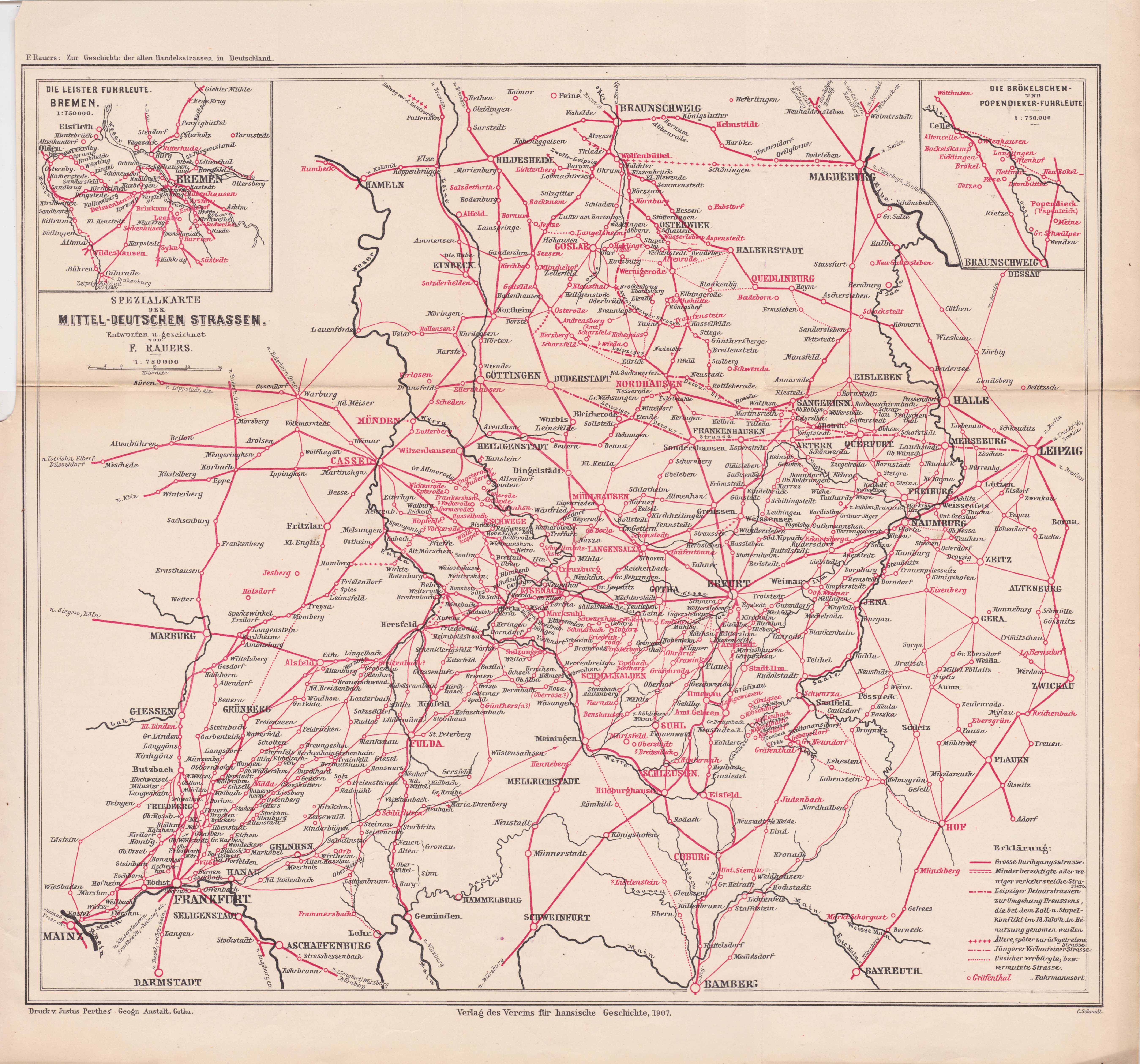 Kartenbeilage zu: F. Rauers - Zur Geschichte der alten Handelsstraßen in Deutschland